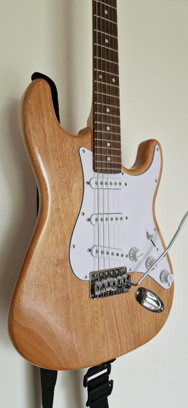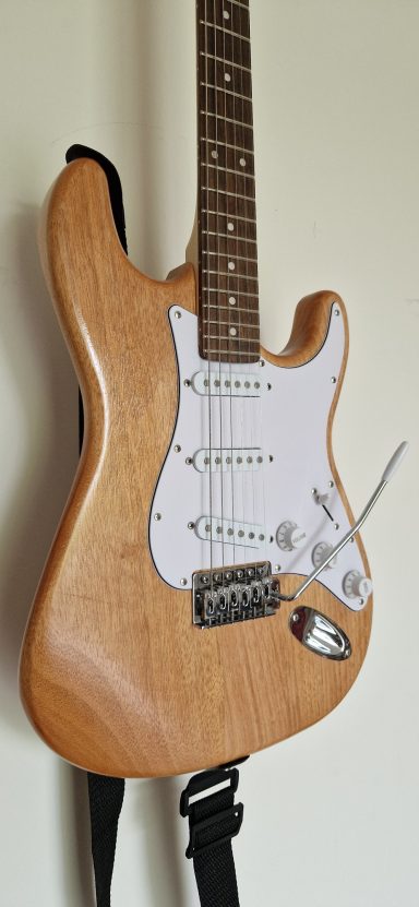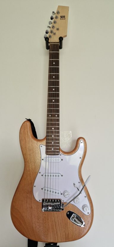 This is a guitar that's inspired by the legendary Fender Stratocaster, used by many guitar heros, for example David Gilmour.