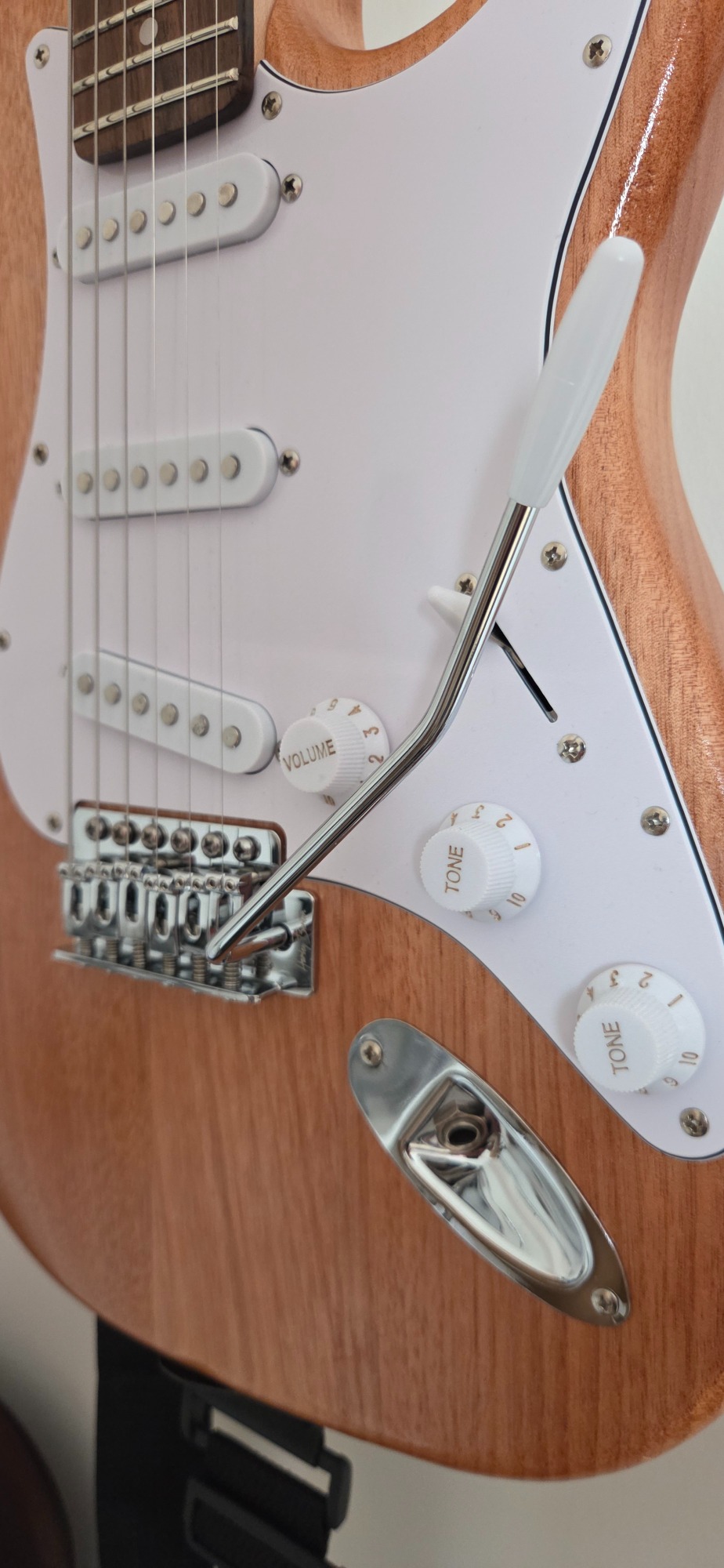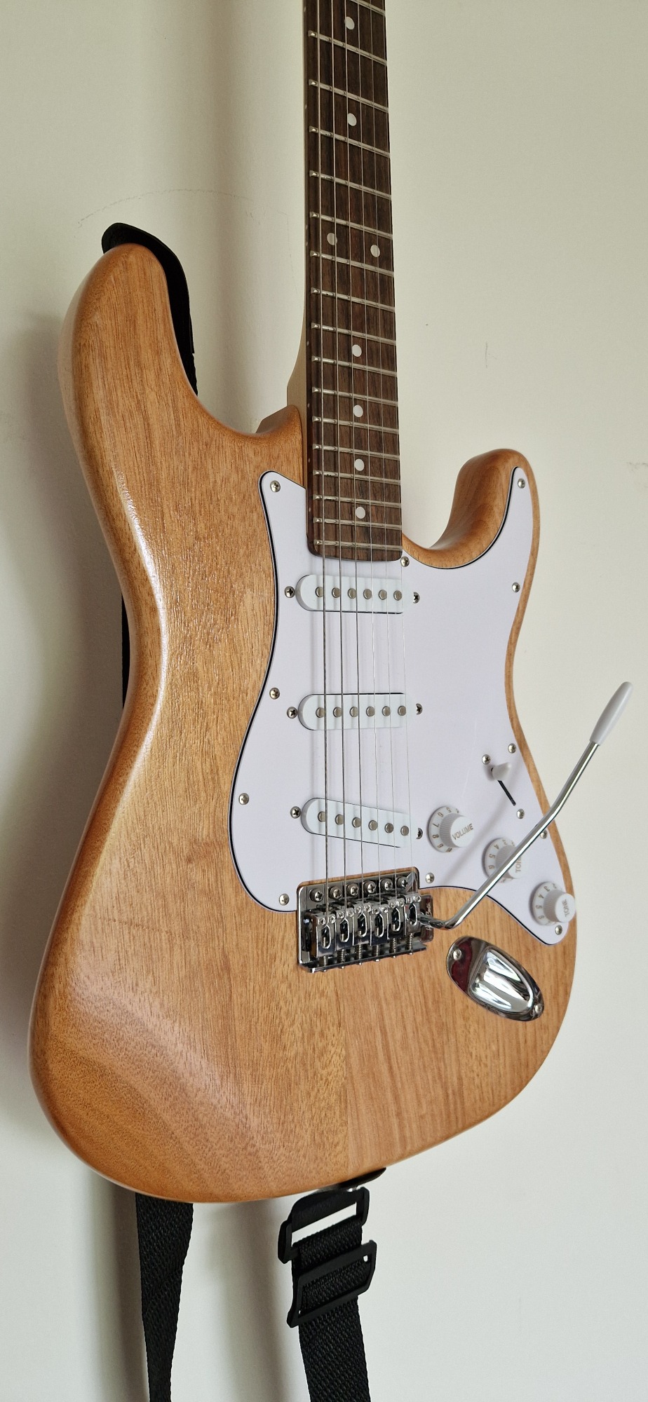 LST model wood: Screwed neck / Rengas body / Flat top / Neck: Maple wood / Fingerboard: Laurel / Dot inlays / Double action truss rod / 22 Frets / Pickups: 3 single coils / 1 Volume and 2 Tone controls / 5-position switch / Hardware: Chrome / Strings: .010 - .046 / Colour: Natural with gloss finish