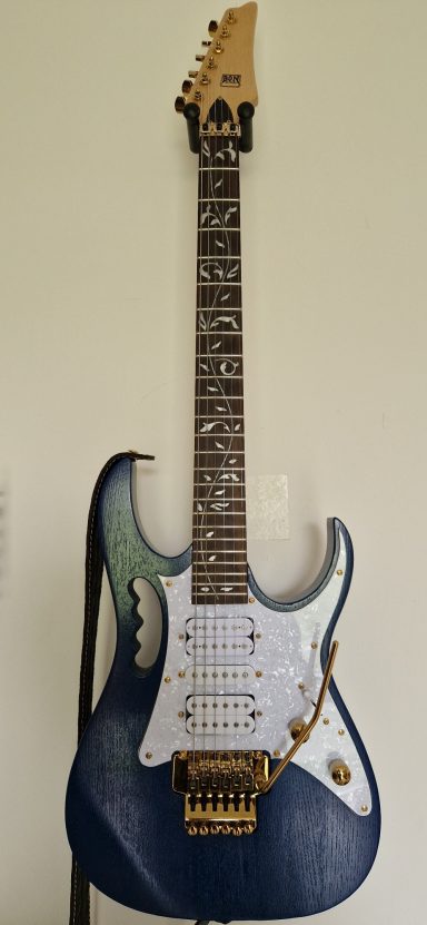 The JEM model is inspired by the Ibanez JEM model, also very well known, mostly for players like Steve Vai.