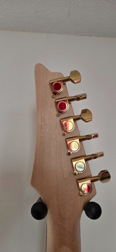 We're building this model with a Rengas wood finish, looking stunning. The 3 single coils and 5-way switch ensure a plethora of sounds.